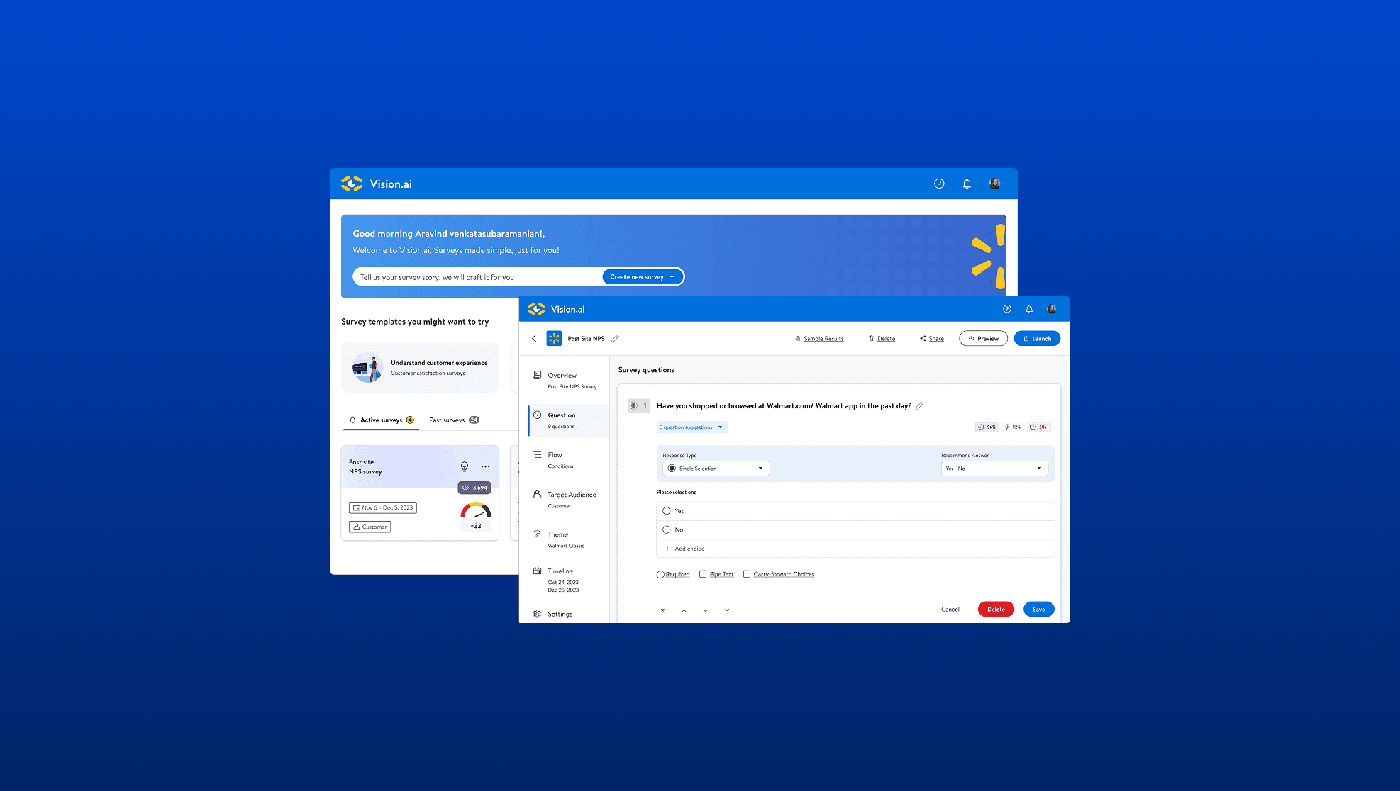 AI powered survey platform for Walmart customers and associates